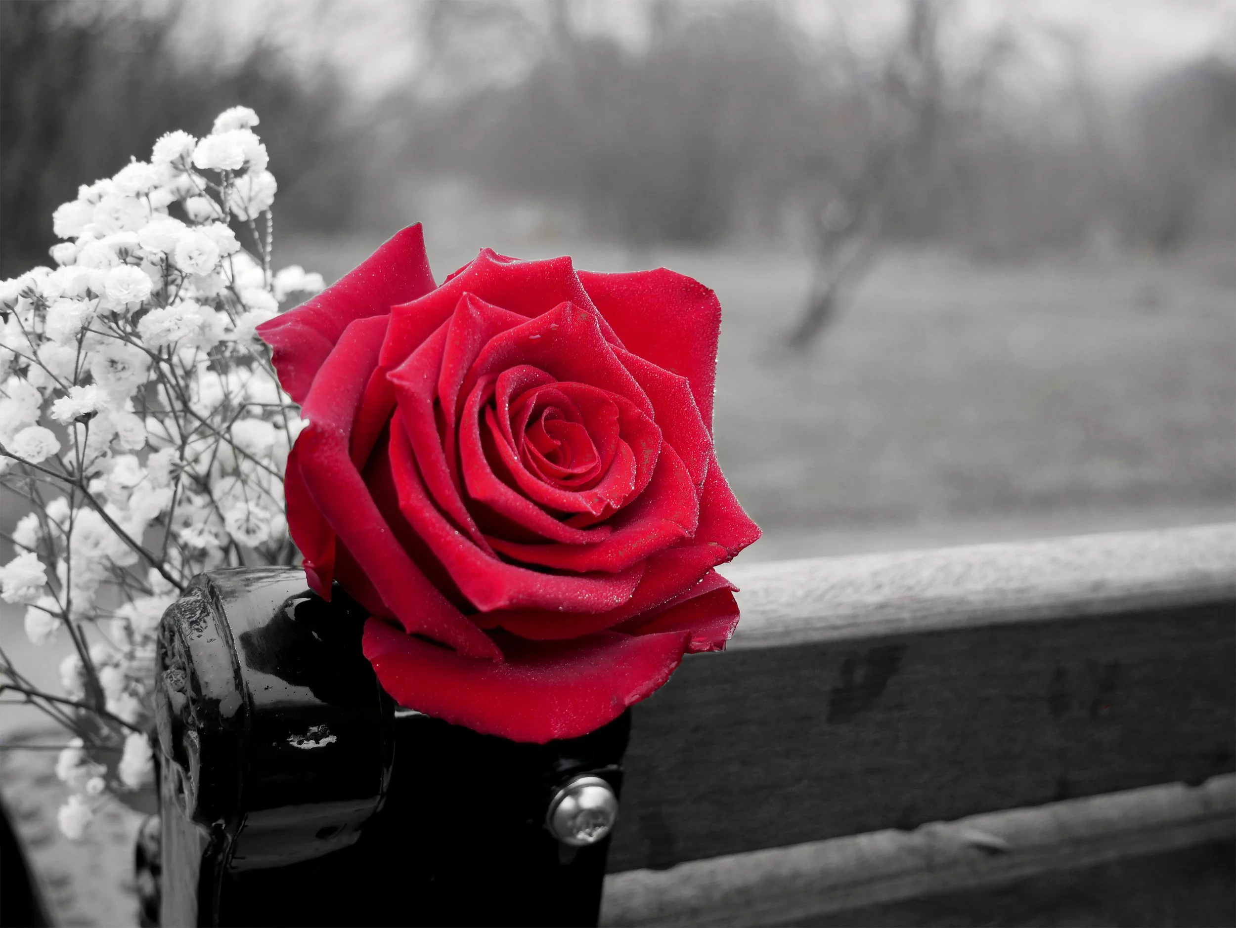 The single rose left propped on a bench.